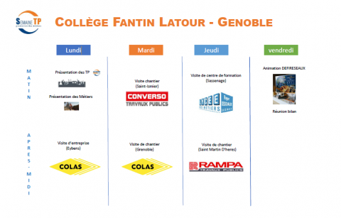 La fédération régionale des travaux publics propose depuis ce début d’année scolaire une semaine de découverte des travaux publics (métiers et formations) sur notre académie de Grenoble.