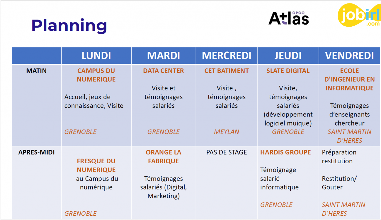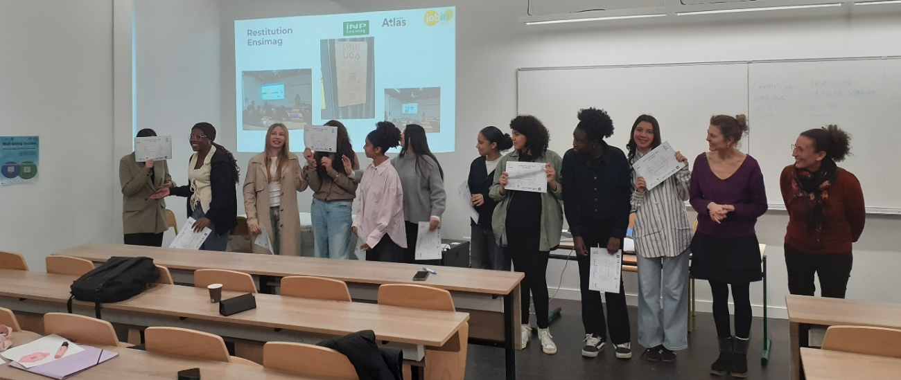 Du 12 au 16 janvier 20262 12 collégiennes de 3ème (11 élèves du collège Stendhal de Grenoble et 1 élève du collège Pompidou de Claix) ont pu découvrir les métiers du numérique et de l’ingénierie dans 4 entreprises (Orange la Fabrique, CETBâtiment, Hardis Groupe, Slate Digital) et quelques-unes des formations associées avec les intervention notamment du Campus Numérique in The Alps et de l'ENSIMAG (groupe INP).