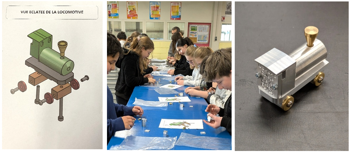 Ce projet innovant a pour objectif d’assurer la promotion des filières de l’usinage auprès des collégiens, garçons et filles, du bassin nord-Isère. C’est par le biais de la participation à la réalisation d’un produit (locomotive) reliant la formation jusqu’à sa confection au cœur d’une entreprise de fabrication mécanique que ces jeunes ont découvert différents métiers de la conception, de la programmation, de la fabrication mécanique, de l’assemblage, de la qualité.